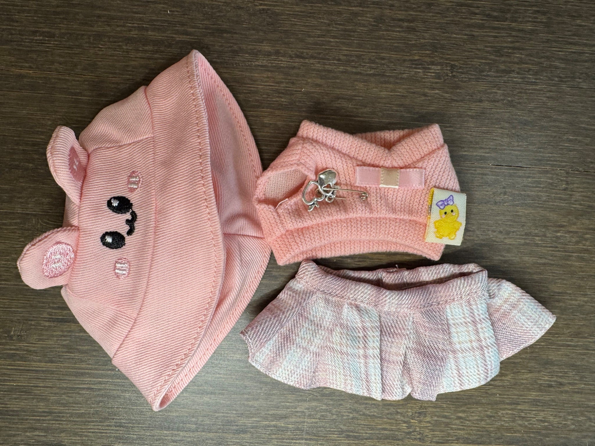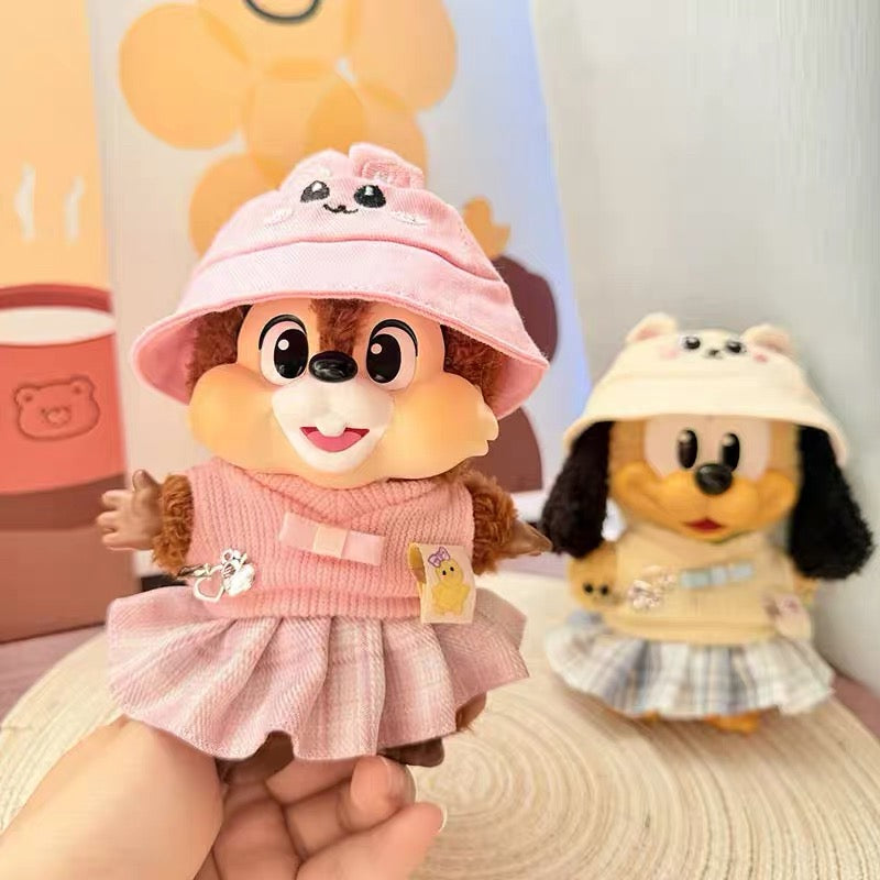 • Clothes for PopMart Mickey Family Cute Together Series Plush - Pink Sweater, Checked Skirt and Hat Set