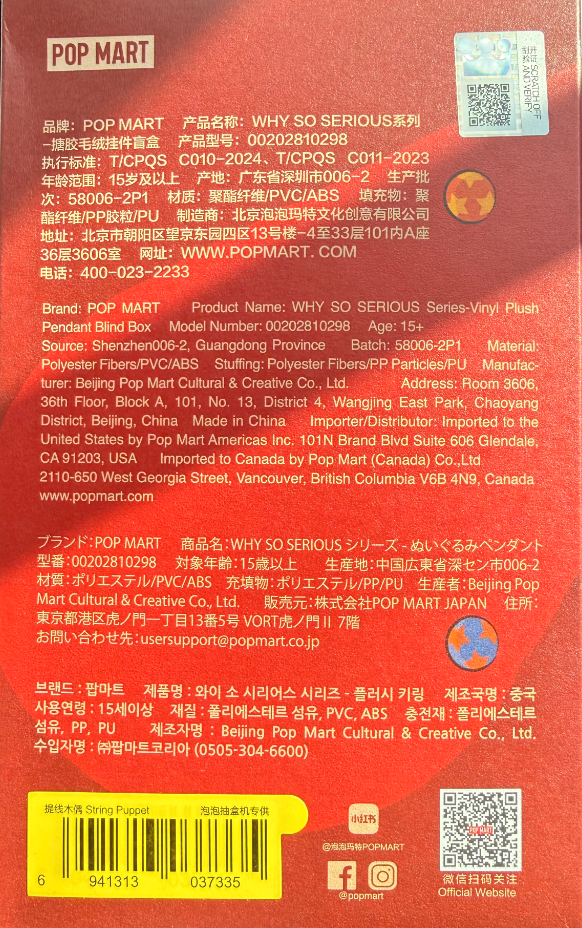 • String Puppet - WHY SO SERIOUS Series - Vinyl Plush Pendant by POP MART