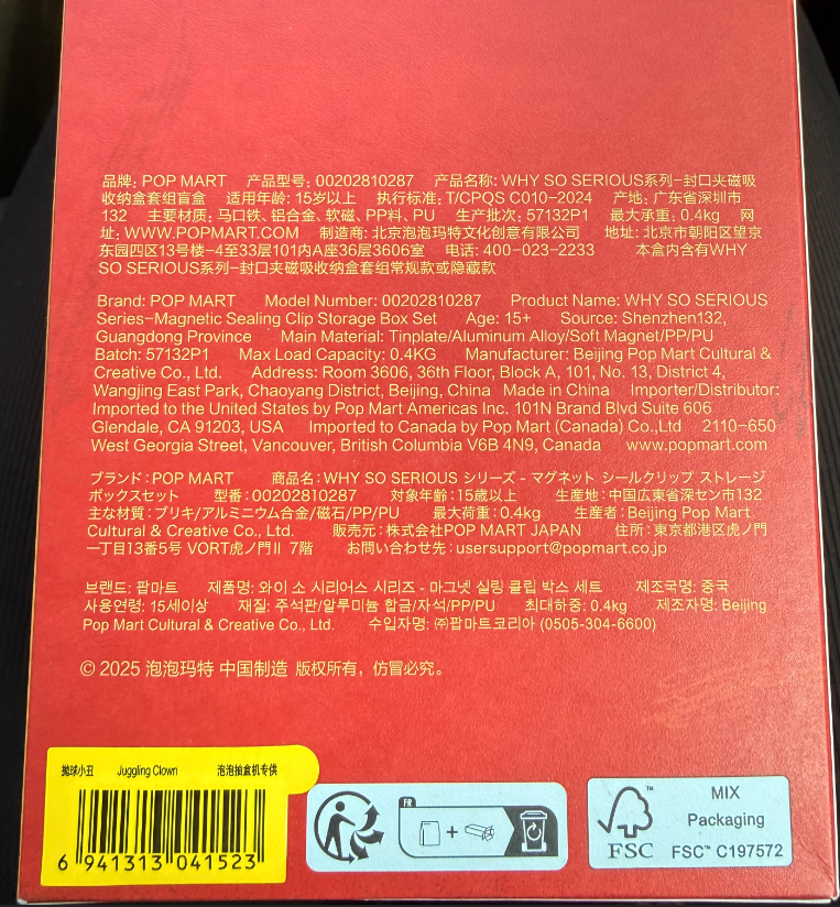 • Juggling Clown - WHY SO SERIOUS Series - Magnetic Sealing Clip Storage Box Set by POP MART
