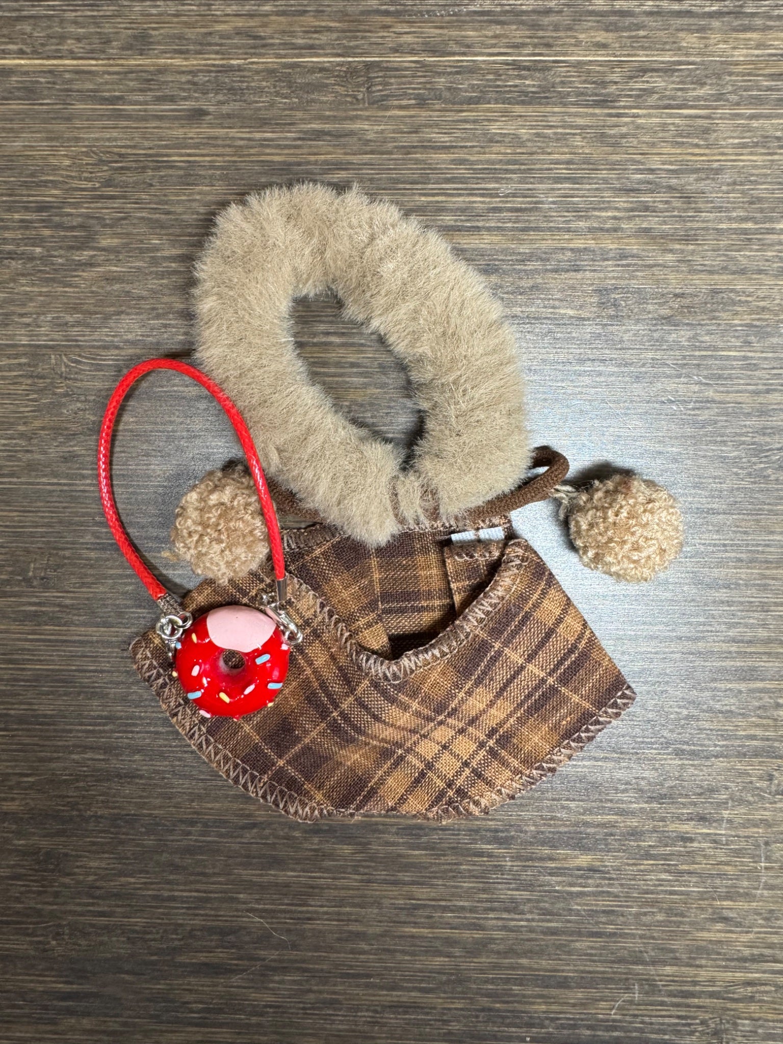 3 pcs: donut bag, cape, fluffy scarf